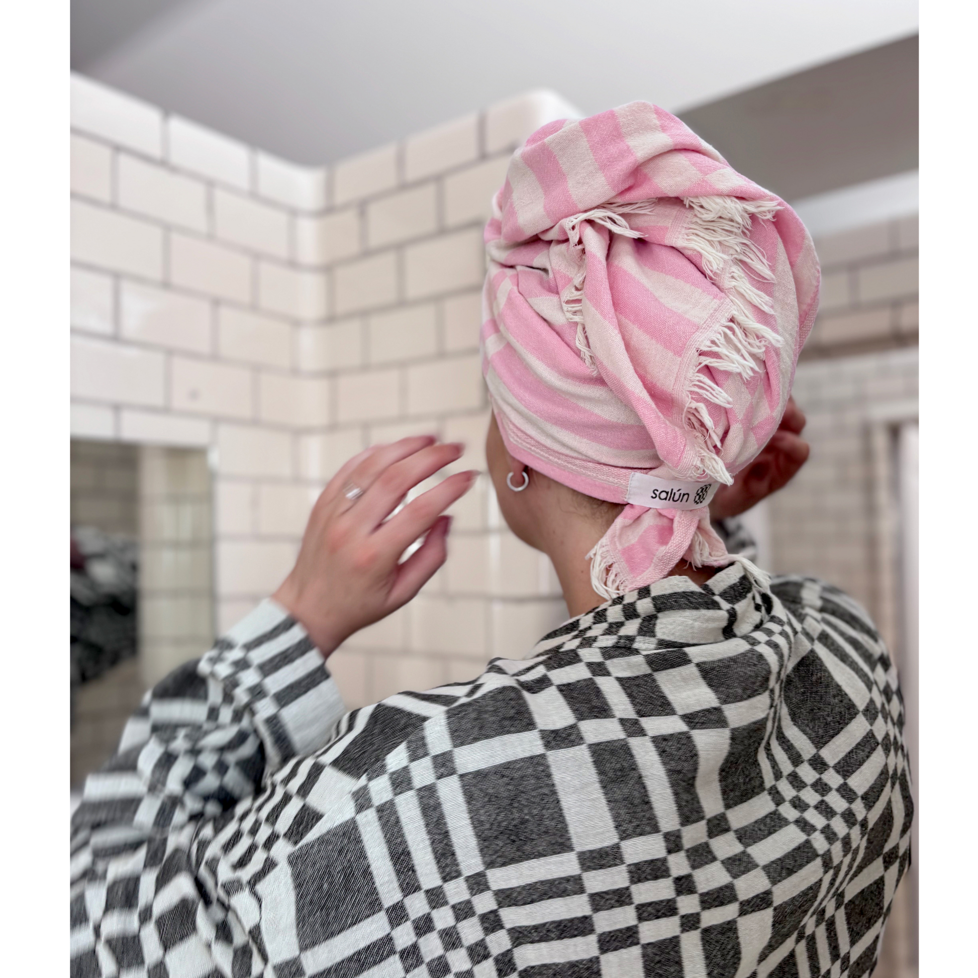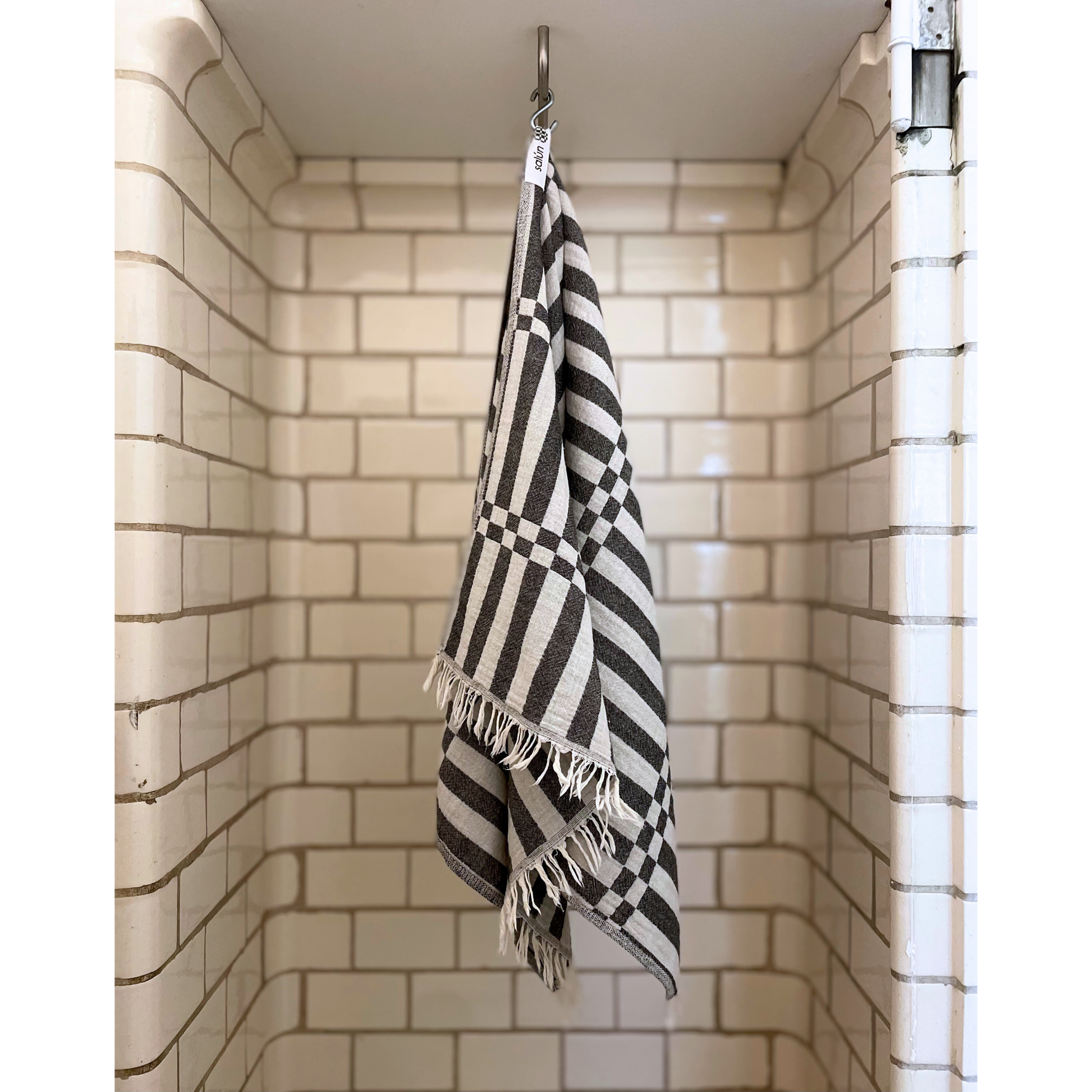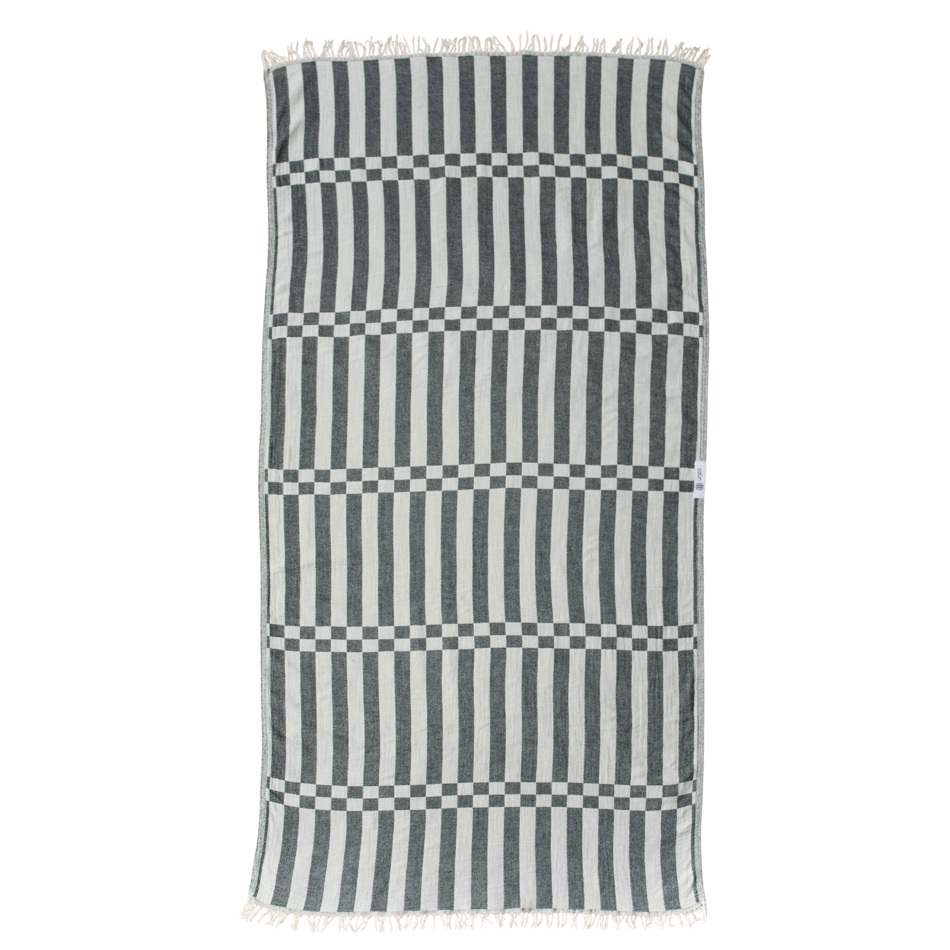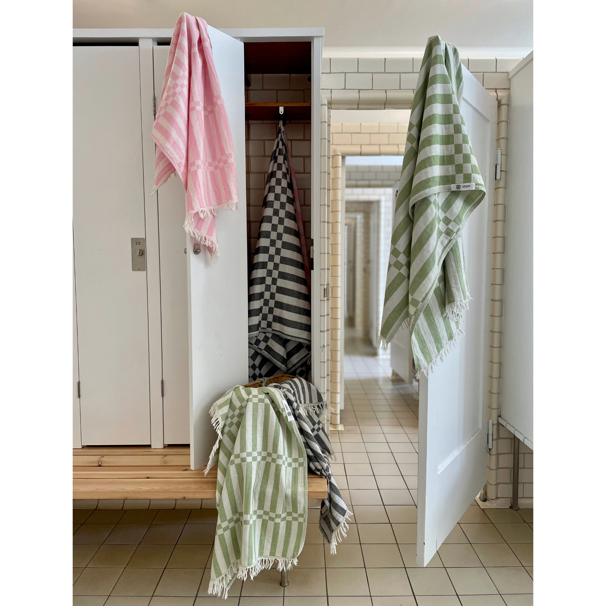 The lane towels are an expressive alternative to the classic striped pool towels. The pattern has the effect of an optical illusion that softens by the Jacquard weaving.